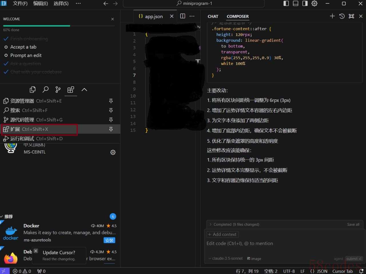 认准这个符号,Cursor的升级可能会导致扩展从上面的边栏下放到下面了