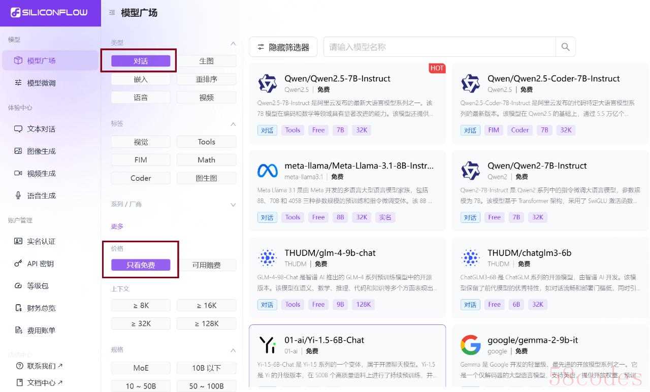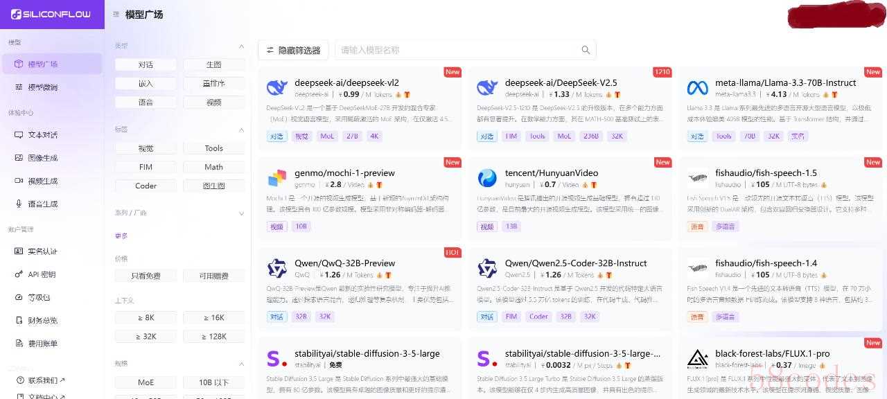 界面长这样,这是登录之后的界面(地址:https://cloud.siliconflow.cn/models)