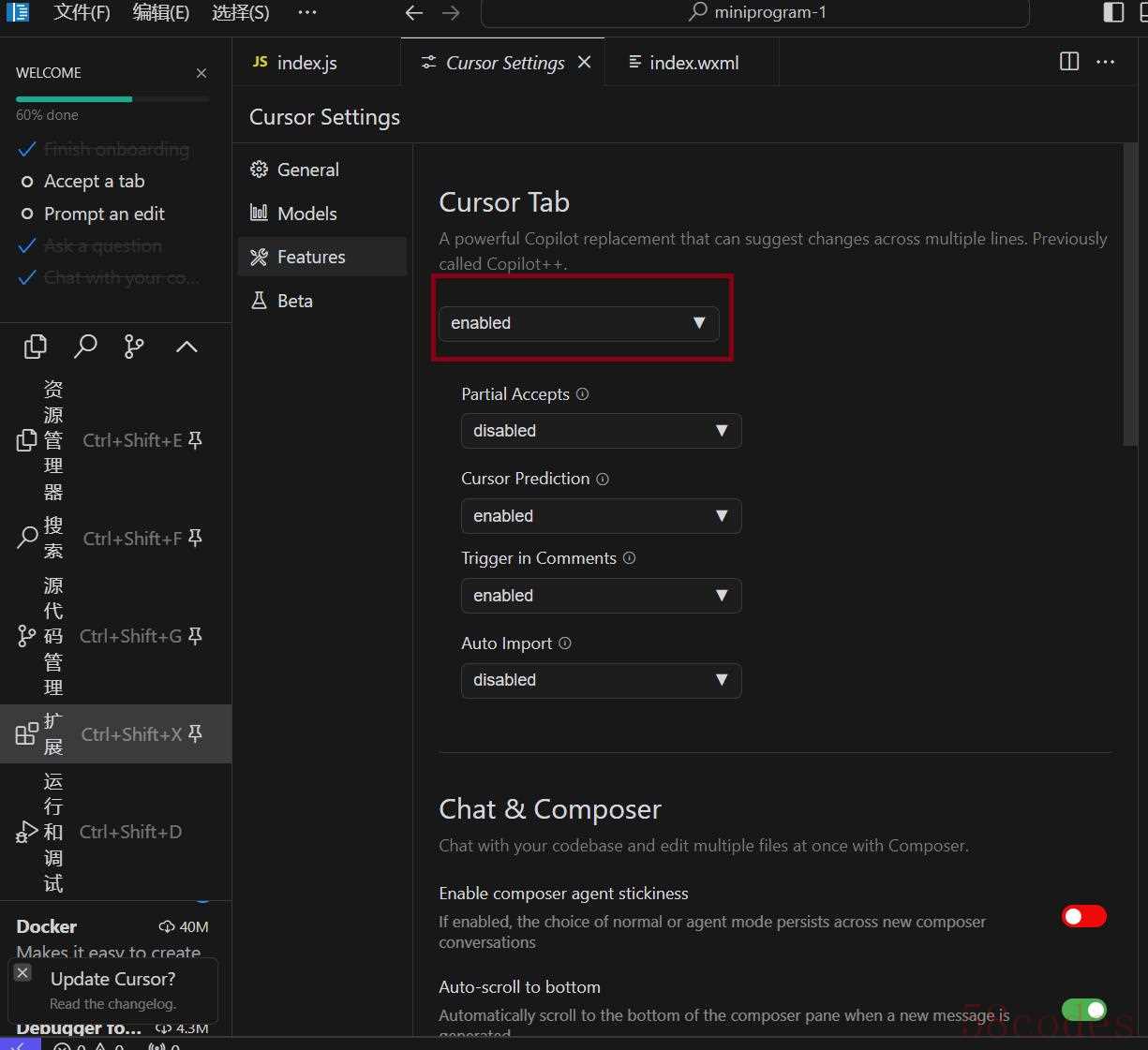 2、打开Cursor,进行基础配置