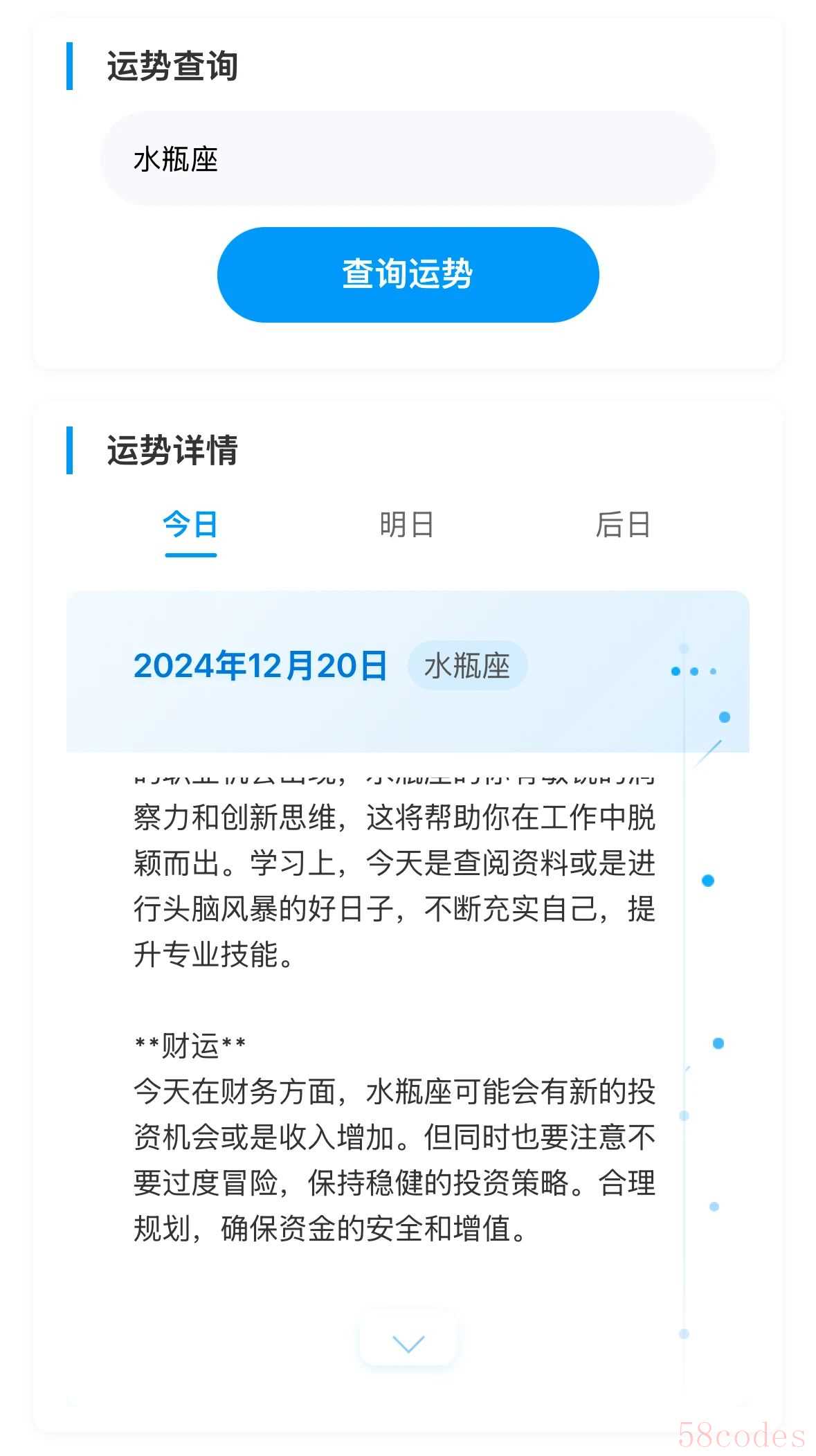 我最满意的是在选择不同星座的时候会变换按钮的颜色,特别有趣写完代码、调试完只是完成了一部分,最终需要将代码提交审核、进行小程序备案等等。但,好消息是,代码审核通过了,意味着这个小程序最起码做到了:1、代码能运行;2、加密算法部分有效;3、没有其他可见漏洞。经过这一次尝试,我又不得不感慨:学习一件事最好的时机,是十年前;其次,是现在。可能AI并不能像我们在科幻片中想象的那样,帮助我们过上衣来伸手饭来张口的美好生活,但至少它让我们触碰到了更多的可能:一种不被工具的利用门槛限制、不被规则条款约束、真正放飞创意的自由。如果每个人都是会被时代洪流抛下的,那么我期待至少能套上AI这个求生圈。诸君,共勉。