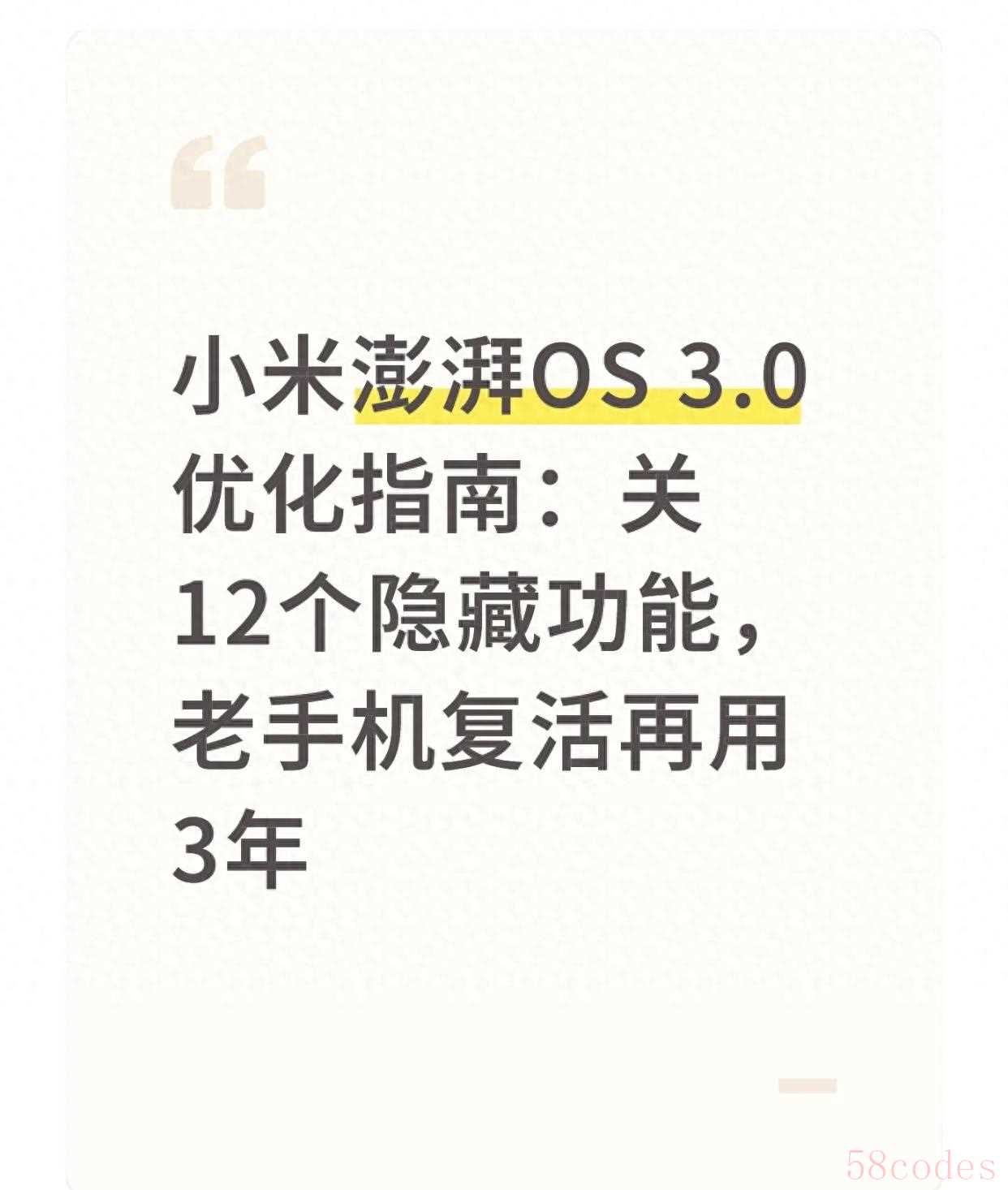 "小米澎湃OS 3.0优化指南:关闭12个隐藏功能,老手机复活再用3年"