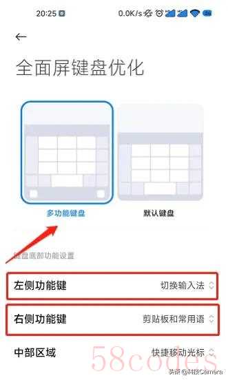 在下面可以设置左右两边功能键分别是什么,而中间区域则是快捷移动光标功能,这个功能非常的实用,聊天打字很多的时候,想修改中间的内容,奈何手指太粗光标死活都移不到对应的位置,现在利用中间区域的移动光标功能,可以很轻松的实现文字删减修改。