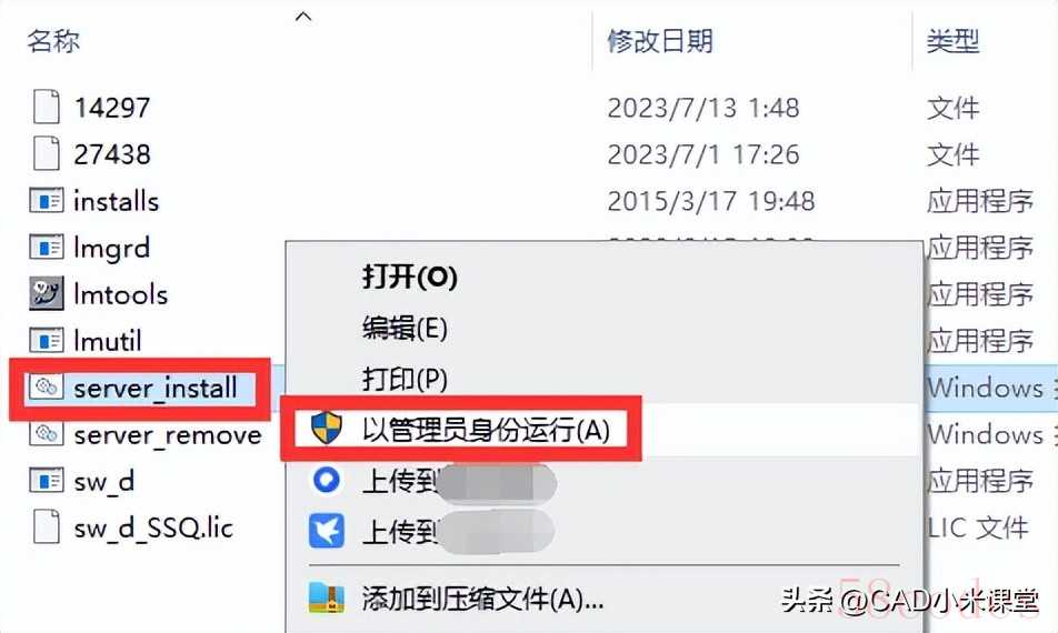 9、找到【server_install】文件,鼠标右键,点击【以管理员身份运行】。