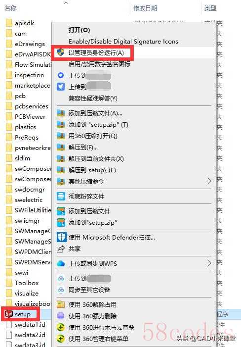 12、找到【setup】程序文件,鼠标右键,选择【以管理员身份运行】。