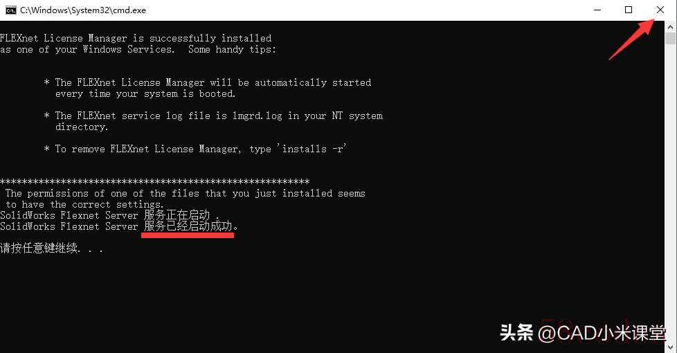10、显示【服务已经启动成功】后,点击右上角【X】退出。