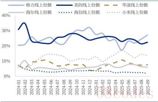 在银河证券的研报中,今年6月,小米与格力在空调市场的线上零售额份额首次交汇,但在后期快速拉开差距,格力仍保持领先。