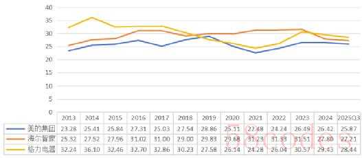 毛利率方面,格力电器前三季度为28.44%,同比2024年有所下降,且近两年皆呈现下滑趋势。