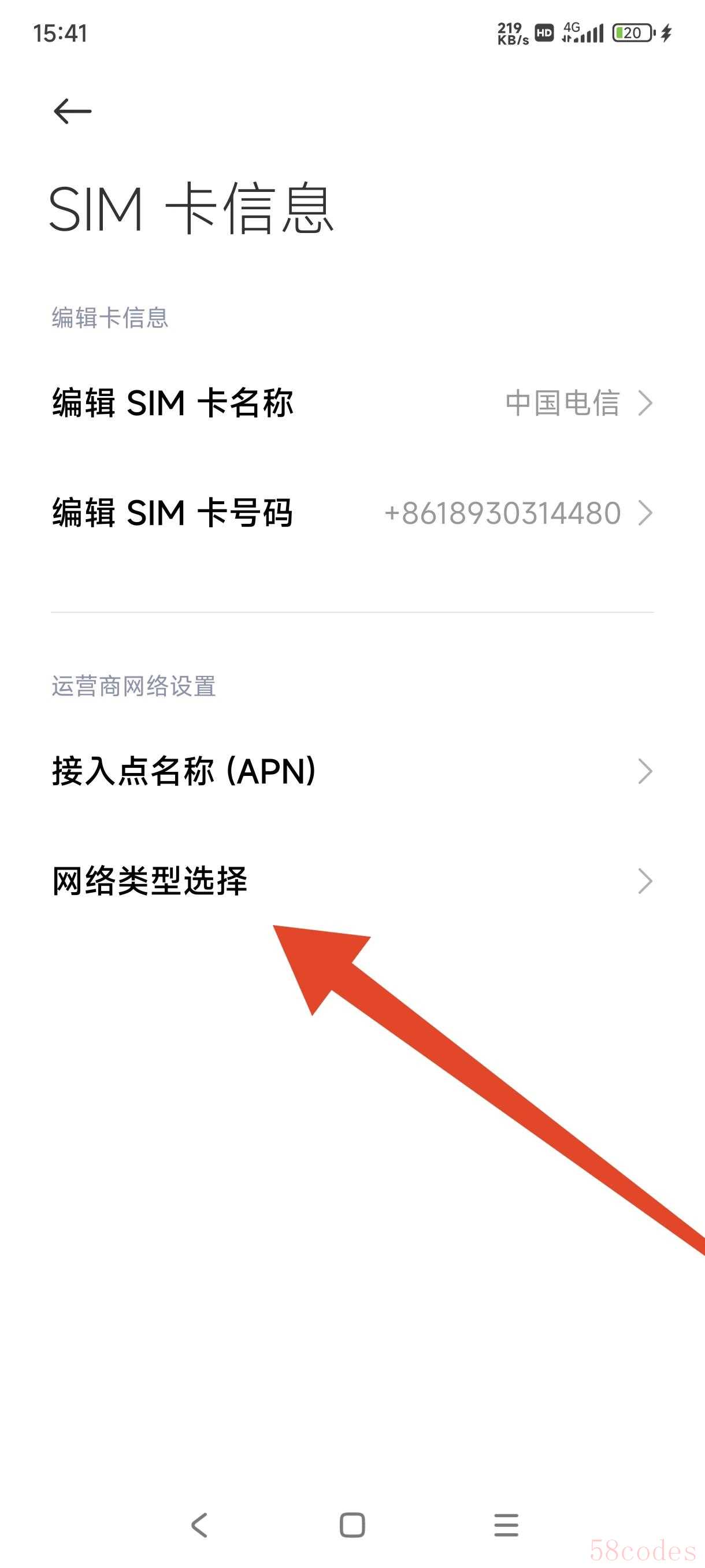 找到 `首选网络类型` 或 `移动数据选项` 或类似的选项。