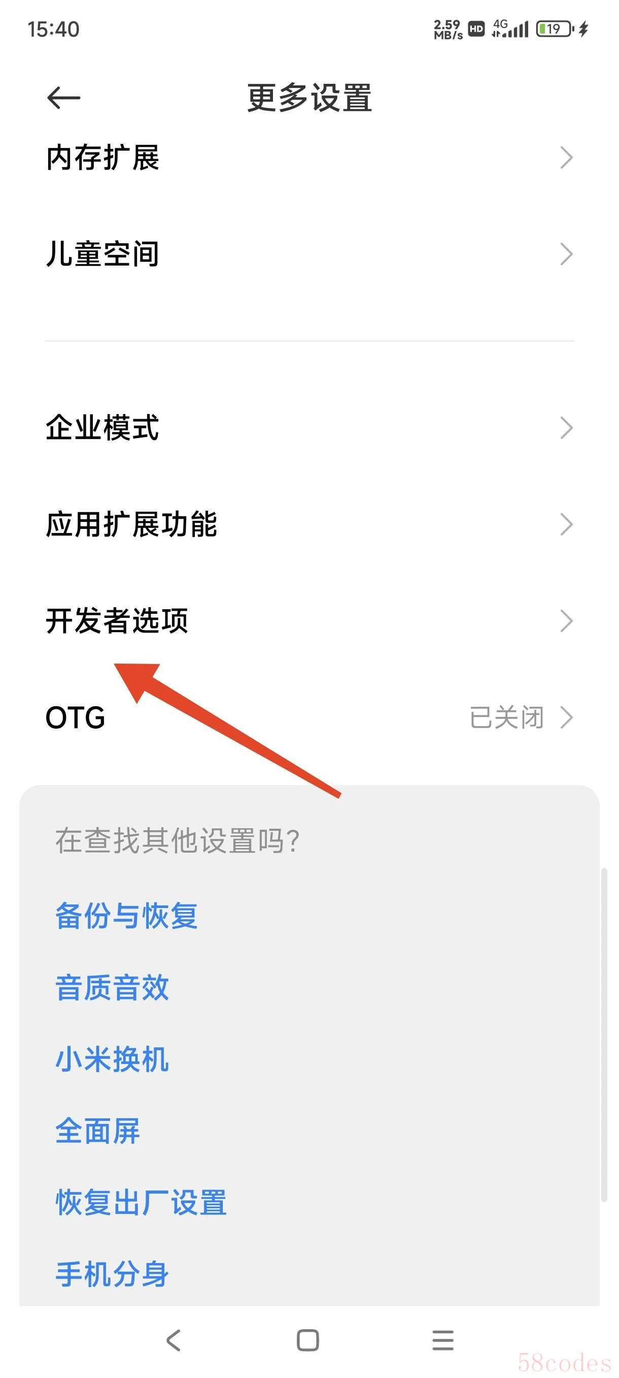 在更多设置里面往下拉,找到开发者选项