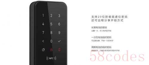 小米米家智能门锁支持高达20位的密码防偷窥乱码技术,在你输入密码的时候,可以在正面密码之前或者之后加入任意数字,只要正确面还连在一起,并且密码总长度不超过20位,就可以开门。避免了与他人一同到家时,当面输入密码的尴尬,并且防止他人记住密码。