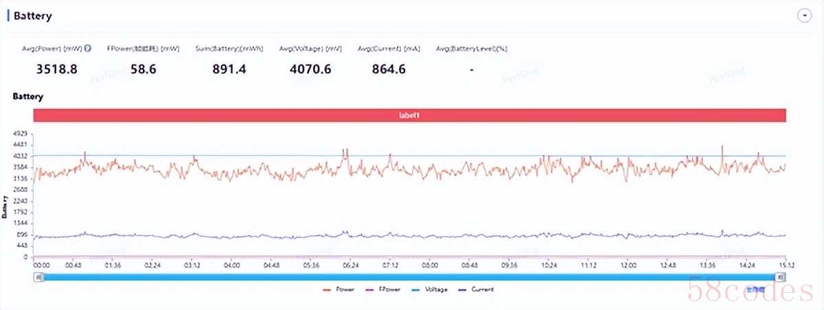 游戏平均功耗3.51W,每帧能耗58.6mW。这个平均功耗基本上是上一代骁龙8至尊版运行《王者荣耀》时的功耗表现。