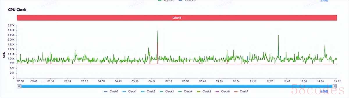 观看运行时的CPU情况,可以看到CPU基本稳定在最低的频率周围,偶有升频也会很快降下来。