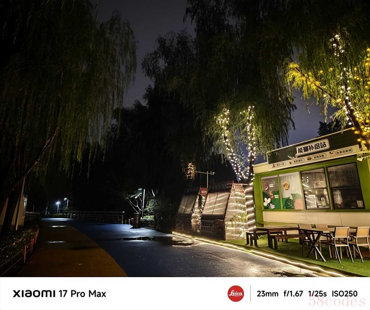 本次的摄像头是最值得一说的,就是小米17 Pro Max独占的5X潜望式长焦,1/2的大底,拥有独家的超聚光棱镜技术,能够在拍摄时提供30%的额外进光量,在夜间也能有清晰而锐利的画质表现。5X长焦在白天夜晚都能随时放心使用。