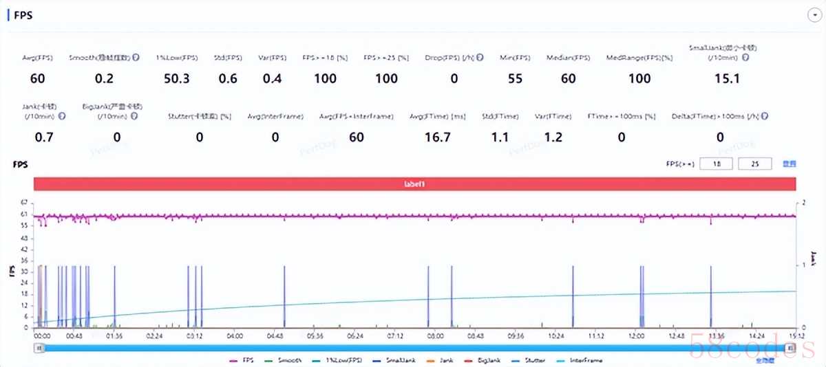 结果显示,平均游戏帧数为60fps,稳帧指数0.2,1%Low帧更是有50.3fps!《原神》在手机上从未如此的稳定,超满帧的顶级体验。