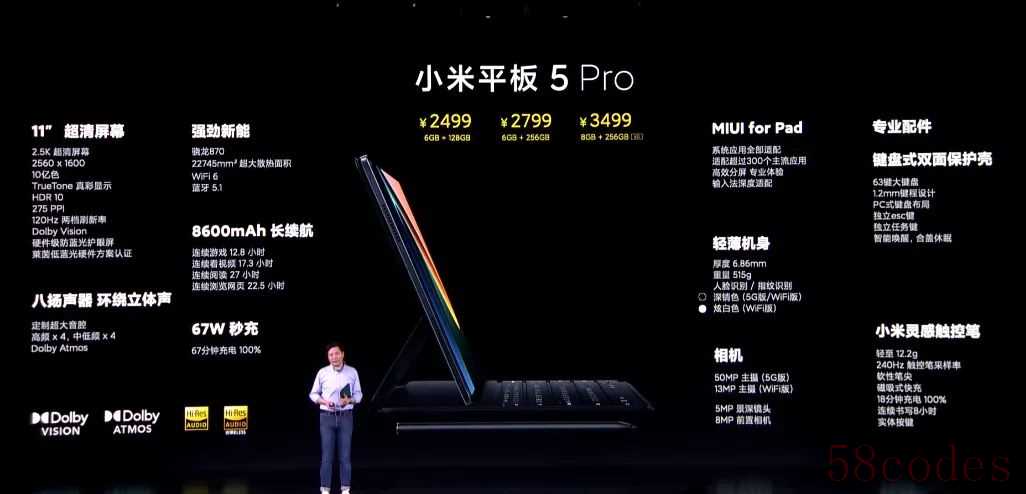 小米平板5 Pro:6+128GB售价2499元、6+256GB售价2799元;