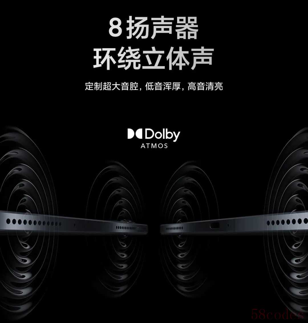 其中小米平板5配备四个扬声器,Pro更加离谱,直接干到了八扬声器,且全系支持杜比全景声。