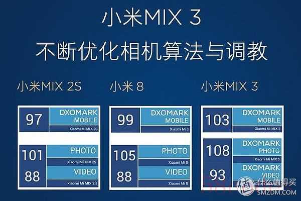 后置方面,小米基本照抄了MIX2S,采用1200万(广角,索尼IMX363,f/1.8,1.4μm,2PD双核对焦)+1200万(长焦,三星S5K3M3+,f/2.4,1.0μm像素)后置变焦双摄,支持光学变焦、四轴光学防抖、人像模式、AI场景相机,DXOMark分数也还不错。