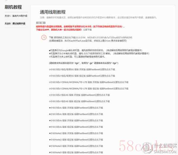 第二种就是今天用的线刷,需要使用手机连接线,将手机连接至电脑,然后使用教程中给出的小米专用刷机软件刷机(这可比其他需要TWRP+ADB方便多了)。这里教程就非常详细了,特别是还需要注意先解锁BL锁,然后再按照教程刷机,需要注意请从这里下载Fastboot完整包