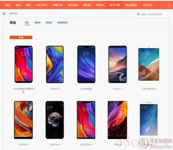 进入MIUI下载界面,选择对应的手机版本,这里我们选择小米MIX3。
