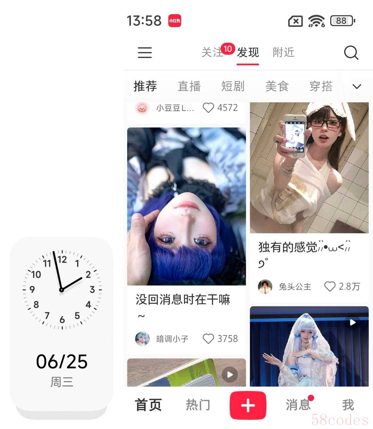 小米MIX Flip 2的外屏,就是第三类的全功能外屏,摄像模组的旁的一小块屏幕专门划出来显示小组件, 其余区域的比例,就是一个纯粹的手感矮胖的常规手机,体验和常规手机一样,不需要专门的优化适配,常用APP全覆盖,只要能添加至外屏,都能够有一个不错的显示效果,而且大部分APP的布局没有变化,哪怕微博,小红书这种信息类APP,也是全功能版本。