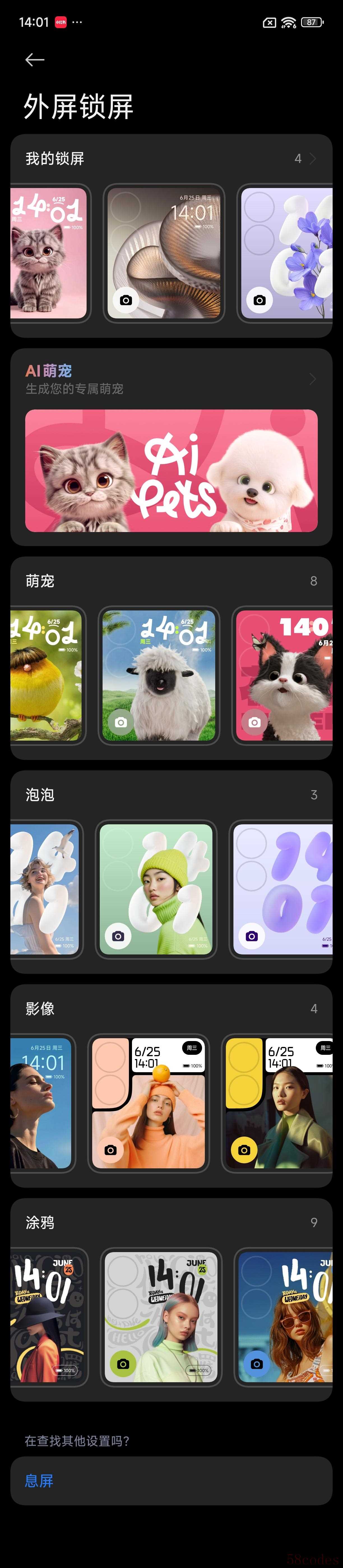 同类型的竞品,都会在外屏上宣传萌宠桌面、萌宠陪伴之类的概念,这一点,小米MIX Flip 2也有,并且在这个基础上,融合了目前小米样式比较多的锁屏设计。