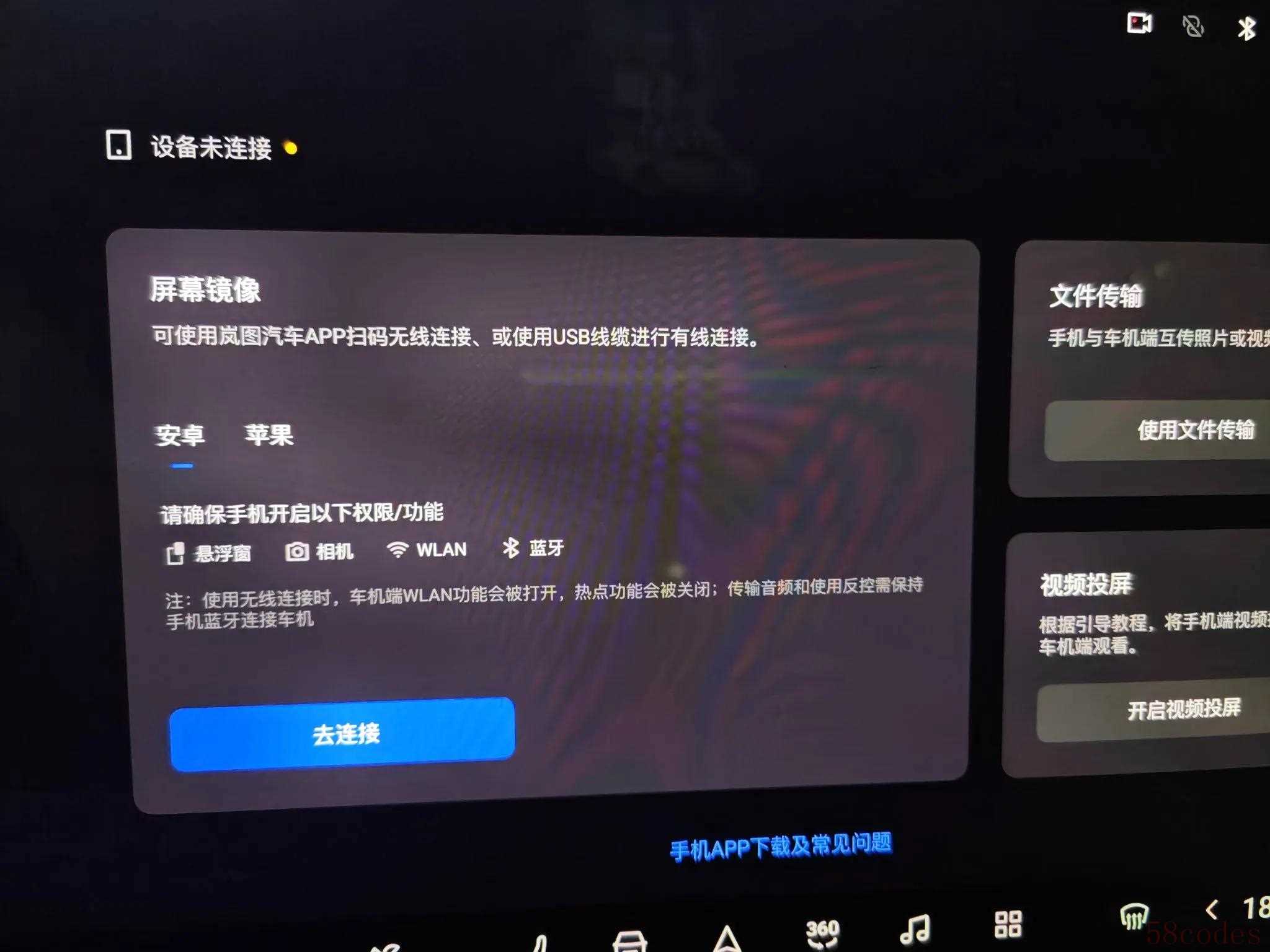 点击车机上的互联功能,并同时登录手机上的岚图APP。