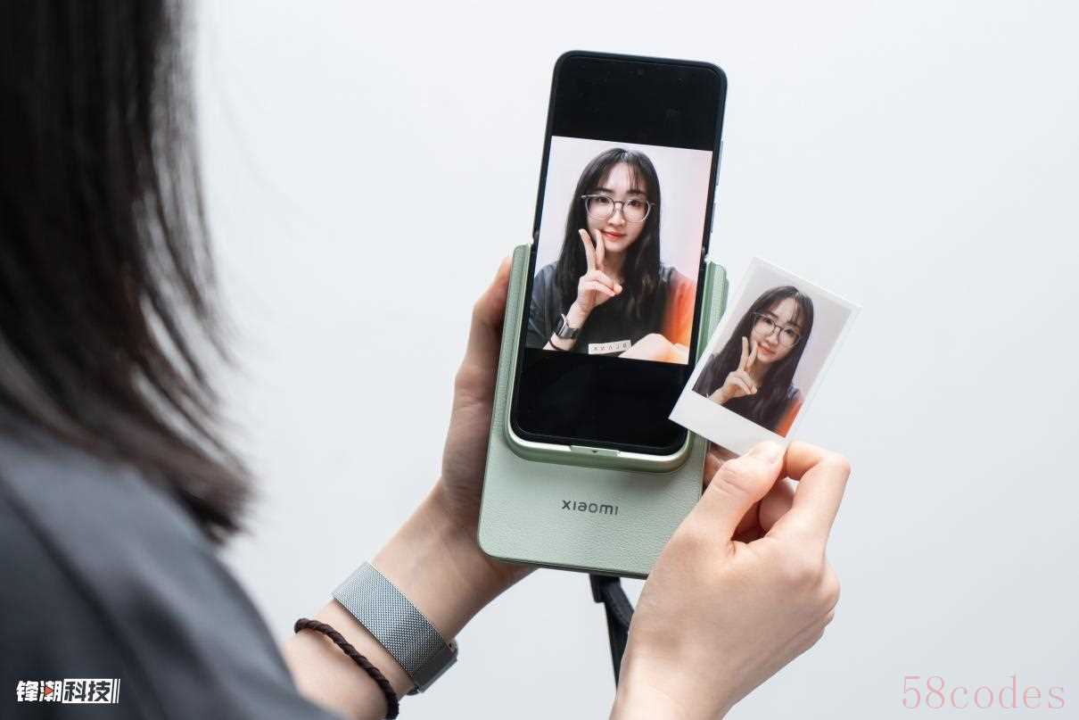 不仅如此,小米 MIX Flip 还做了个“手机壳”,搭配一个米家照片打印机 1S,通过 C 口与手机连接之后,手机就会打开随身拍模式,拍摄之后的照片可以选择打印出来。但效果嘛,确实一般,而且相纸的成本较高,感觉这个玩一玩就算啦。