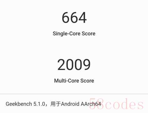 在CPU方面,骁龙750G采用了与骁龙865相同的Kyro 570架构,包括2颗A77 2.2GHz大核以及6颗 A55 1.8GHz高效核心。通过测试,骁龙750G的单核得分为664分,多核得分为2009分,也是一个较为出色的成绩。
