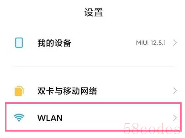 1、在手机设置菜单中点击【WLAN】。
