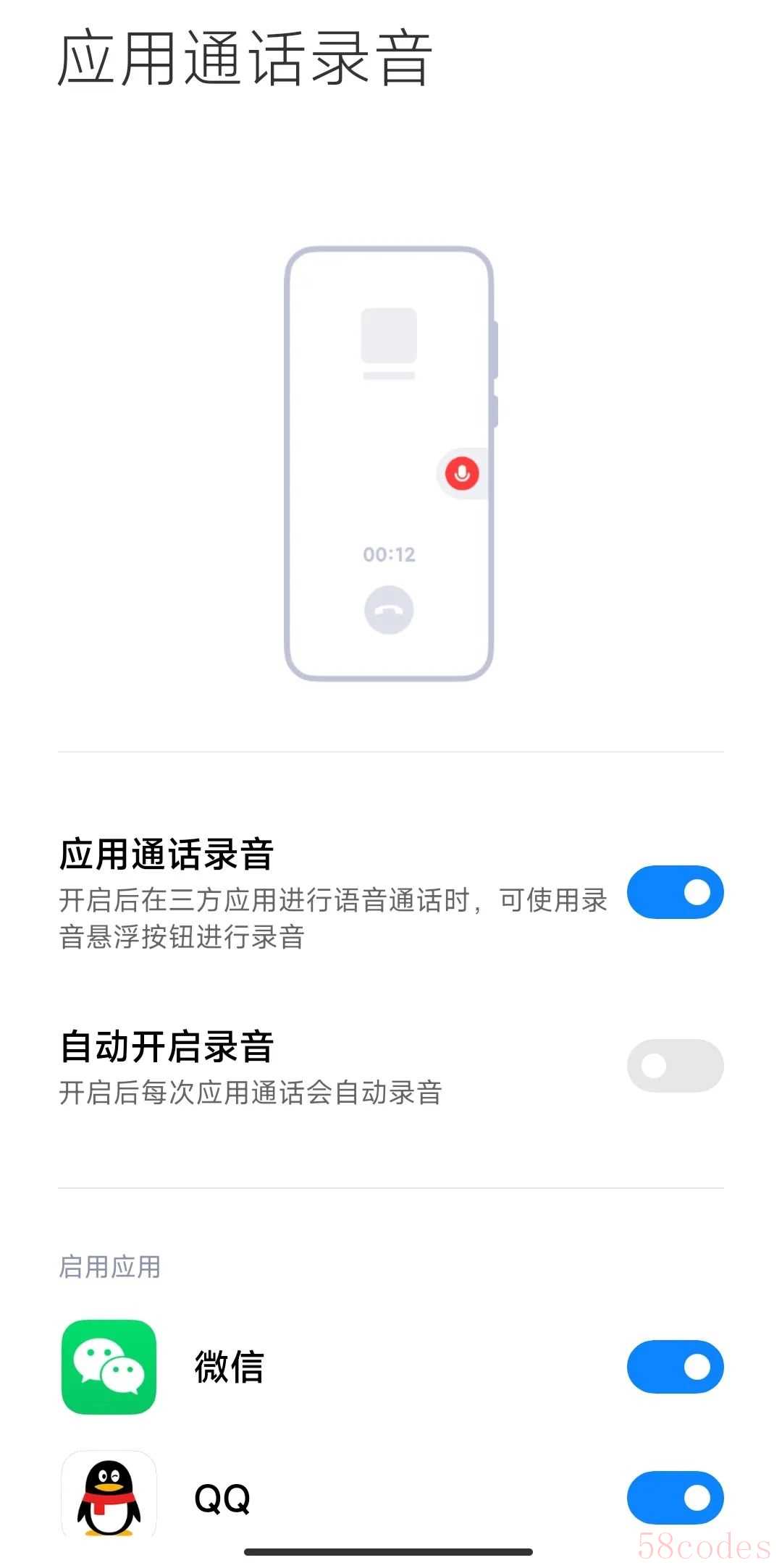 开启方式:到自带录音 App 的「右上角设置」-「应用通话录音」页面。