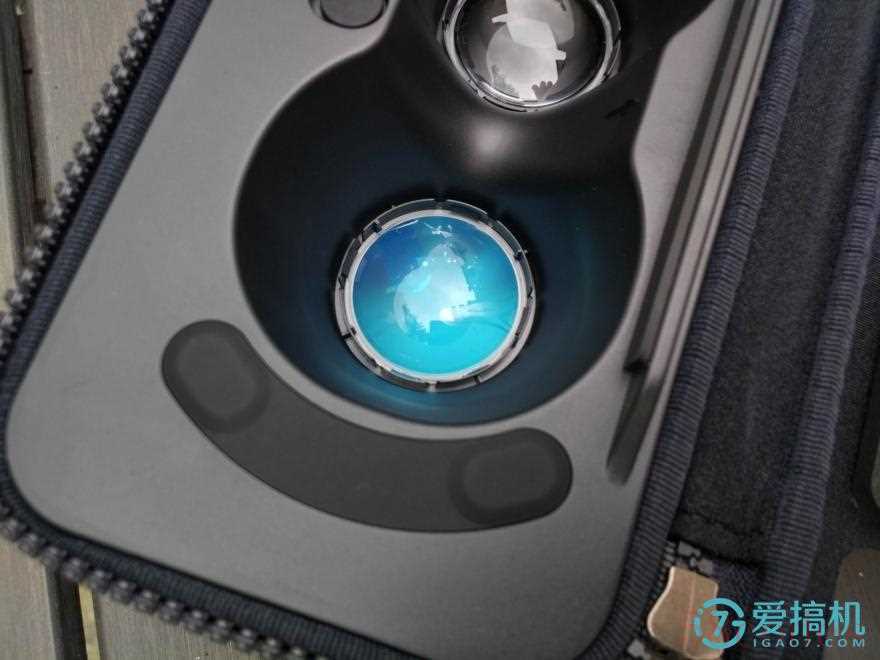 小米VR机身主体以黑色为主,顶部就一个圆键按纽作用是闭合时无法点手机屏幕代替手指点一下手机。底部陷处有效地为鼻子留有空间。