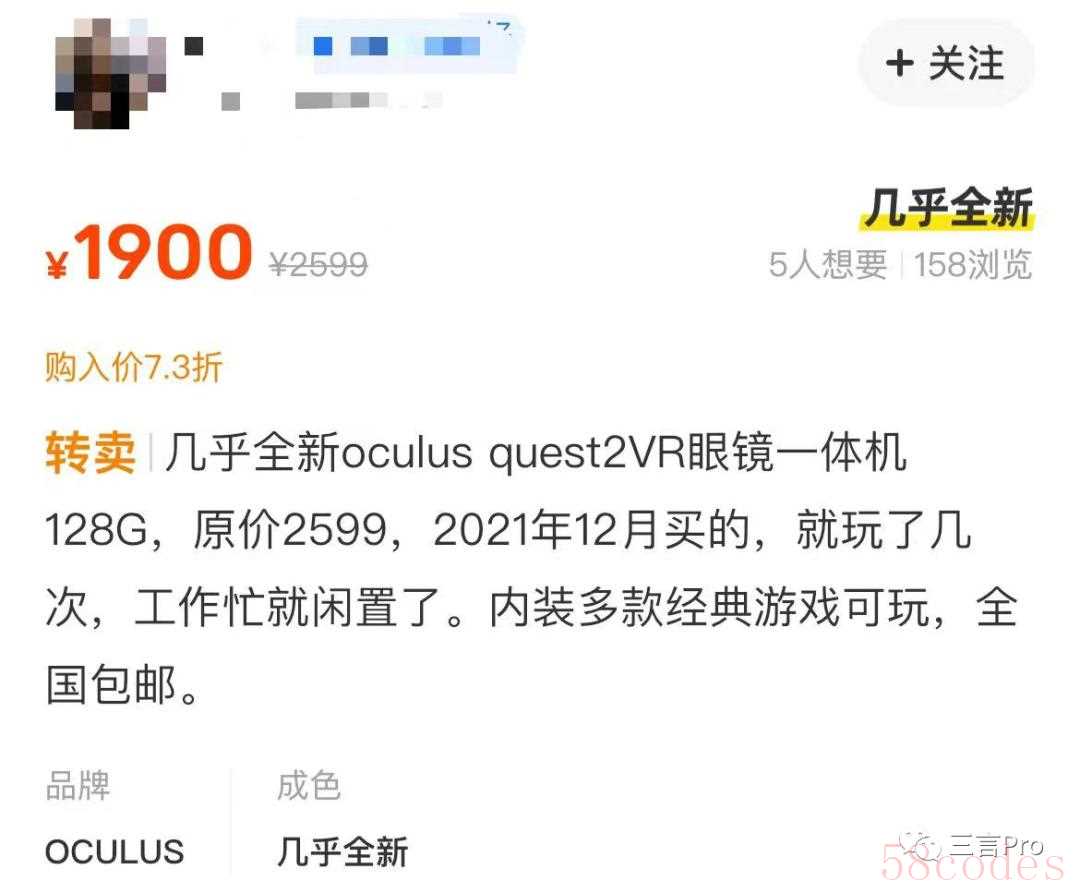 还有人买了Oculus quest2后3个月也选择出手,也就用过5次,据卖家解释是因为晕VR。
