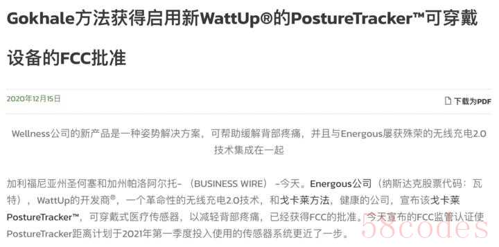 ▲ 一款缓解背部疼痛的设备使用了 Energous 公司相关技术,获得 FCC 批准. 图片来自:Energous 官网