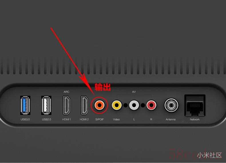 小米电视3s 43/48寸采用S/PDIF输出接口,属于同轴输出孔,下面介绍一下怎么用它接普通音频接口的音响!