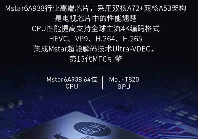 从性能上来说,MS9180那1.5GHz四核A9处理器,四核Mail450的显卡核心并不算特别出色。但它有自己的强项,首度支持真4K点对点输出,也可以直接播放蓝光原盘文件,支持HDMI输入和输出,支持杜比/DTS解码,还有USB3.0和千兆网卡等等,让这款芯片的玩法非常多,相关产品甚至直接提供了硬盘仓,可以直接读取硬盘里的数据。目前应用晨星MStar方案的电视盒子大都过于老旧,型号较少。
