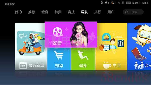 开启小米盒子进入【应用商店】,根据自己的下载需求进行选择【如:导航】,选择【影音】。