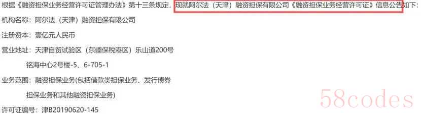 在阿尔法融担成立的第二年初,即2020年1月,天津市地方金融监督管理局便公告了其《融资担保业务经营许可证》。