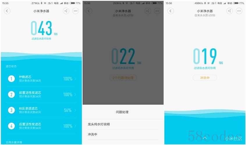 更换滤芯后,第一次使用要进行十分钟左右的清洗工作,到时候手机APP上会有相关的提示。重要的事情,再提醒一遍:更换滤芯后一定要记得滤芯的复位操作。