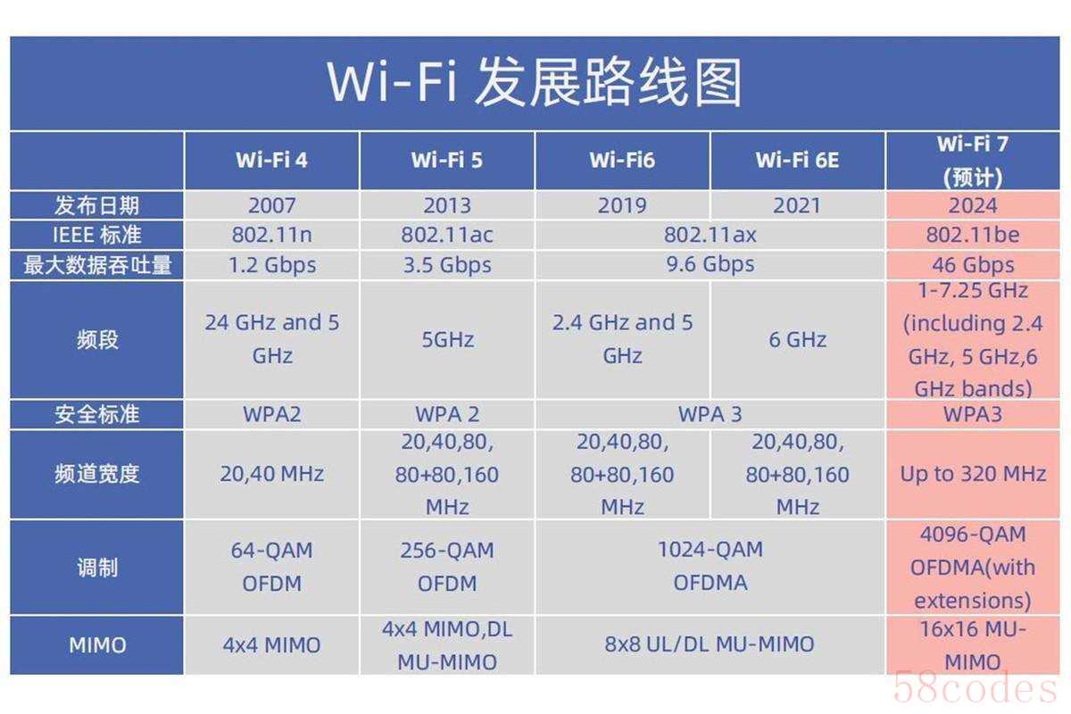 随着宽带的不断提速,速率更高的Wi-Fi 6和Wi-Fi 7已成为市场主流。Wi-Fi 6相较于WiFi5,最高支持9.6Gbps的传输速率,几乎达到WiFi5的3倍之多。
