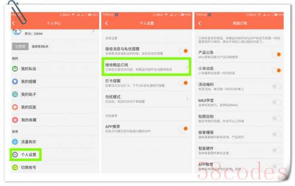 打开方式为:进入MIUI论坛APP-点击左上角的“个人”图标-点击“个人设置”-点击“接收精品订阅”,就可以看到很多很多开关。可以根据自己的爱好来定制,如果你选择“产品公告”并且开启的话,那么以后要是有关产品公告的资讯就都会第一时间推送到你的手机,推送到的地方是你的通知栏,你只需下滑通知栏并且点击就可以查看,给用户更多自己的选择权,工程师的亲民之处自然而然就显现了。