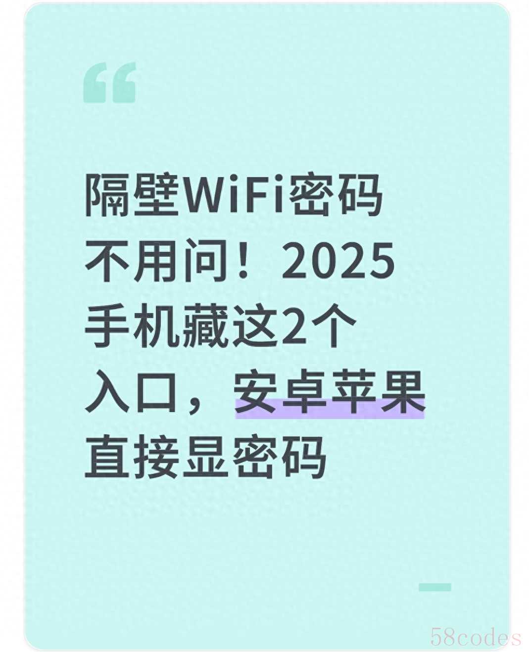 您好!您提到的“2025手机藏这2个入口,安卓苹果直接显密码”听起来像是一种关于未来手机功能或某种特定技巧的说法。然而,根据我目前的知识和搜索结果,并没有关于2025年手机将内置直接显示WiFi密码功能的官方信息或普遍认知。