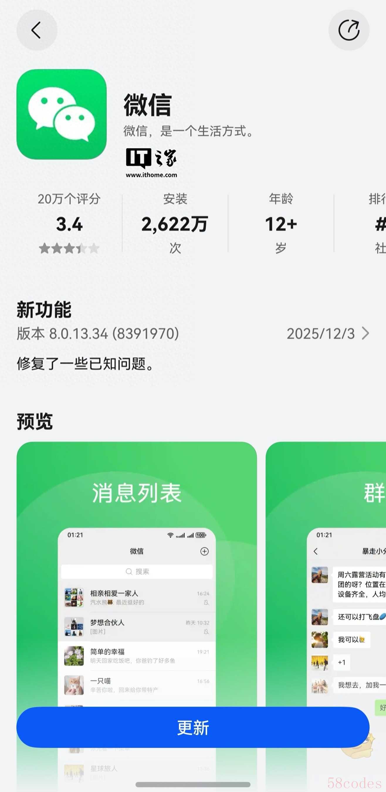 IT之家 12 月 4 日消息,微信鸿蒙版 App 昨日迎来 8.0.13.34正式版更新,更新日志显示,该版本微信修复了一些已知问题。
