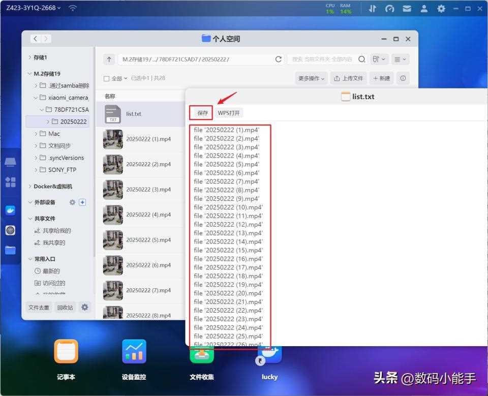 5. "解决视频合并:" 这是最关键的一步。由于摄像头通常按时间片段(如5分钟)录制,需要使用工具将这些片段合并成一个连续的视频文件。极空间NAS本身可能不直接提供全自动的、高质量的视频合并功能,但可以通过以下方式实现: