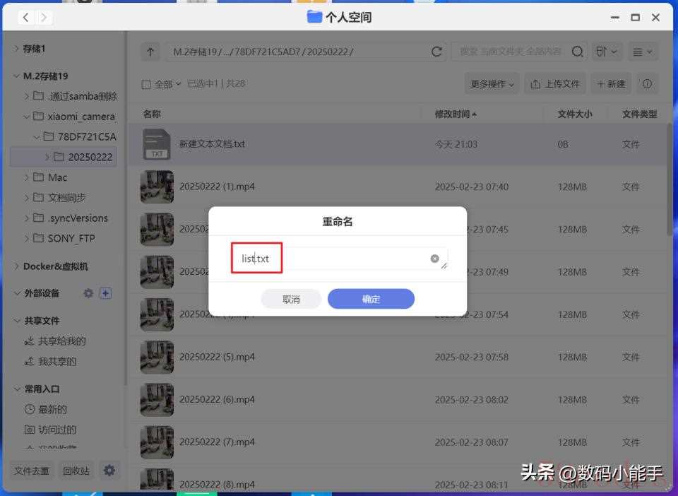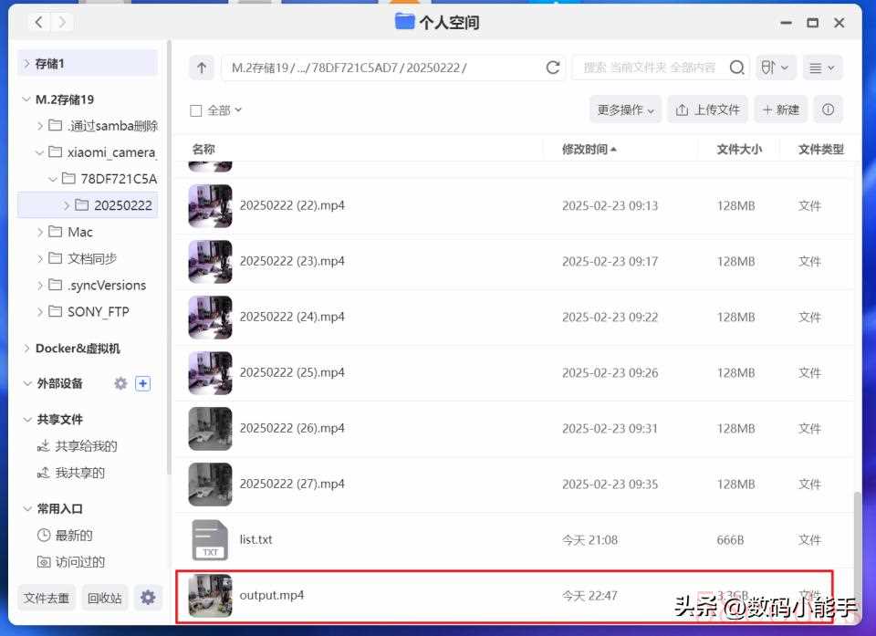 最后我们进入极空间内对应的录像文件储存目录,可以看到合并之后的视频文件。
