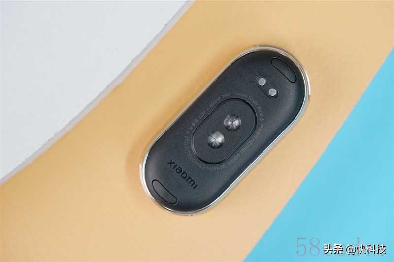手环底部是高精度的健康监测传感器,上方是两颗充电磁吸触点,顶部与底部分别具备两个快拆式卡扣,方便用户一键拆卸更换表带。