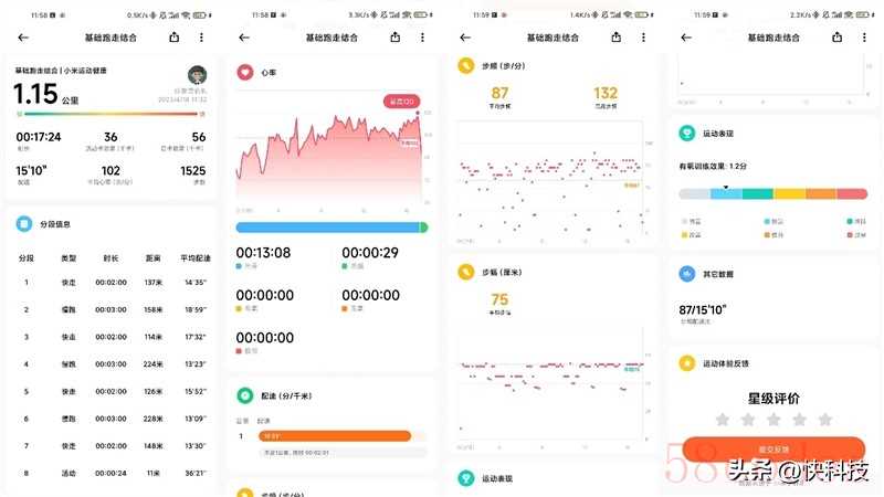 在小米运动健康APP中,我们可以更加直观地看到刚刚快走、慢走的时长、距离和平均配速,还有心率的实时波动、配速、步频、步幅以及运动表现,全方位展现我们的运动数据。