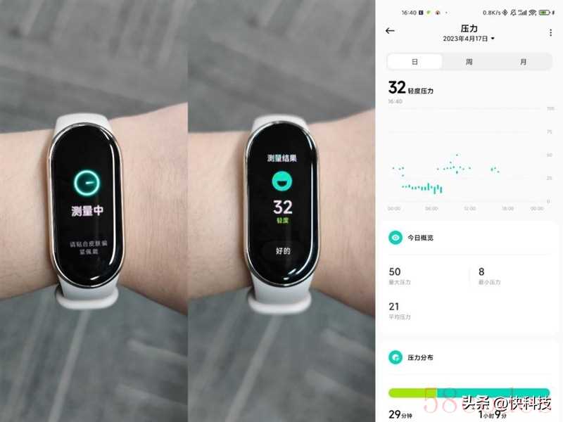小米手环8支持全天候的压力检测,不管是站着、坐着还是躺着,静息、运动还是散步, 都能够轻松测量出实时的压力状况。