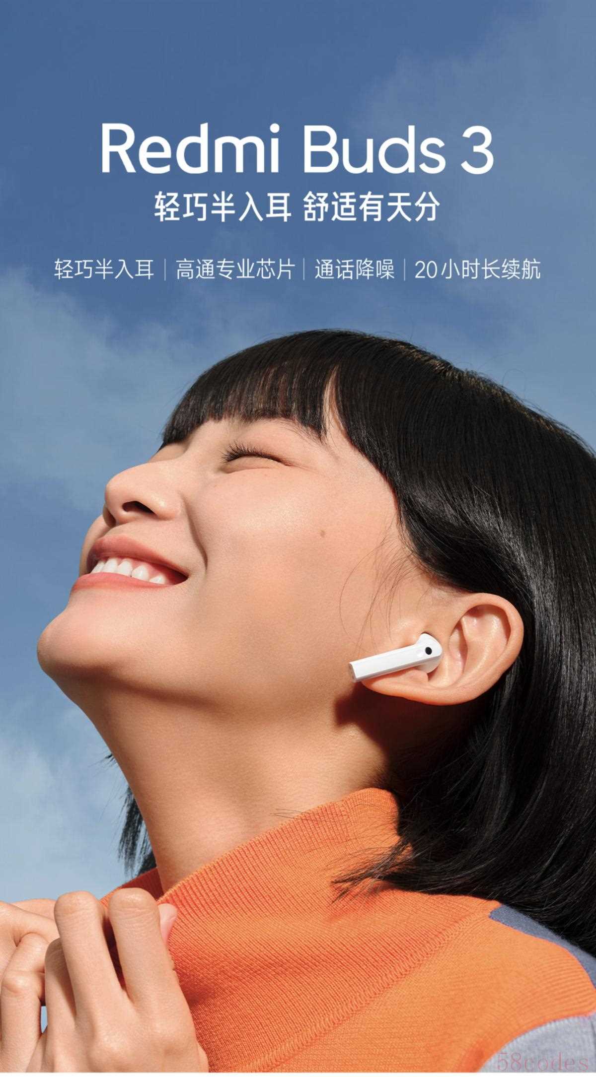 9 月 6 日消息,Redmi 正式发布了 Redmi Buds 3 真无线蓝牙耳机,这款耳机单耳仅有 4.5g 重,非常轻巧,而且采用半入耳设计,佩戴几乎无感。