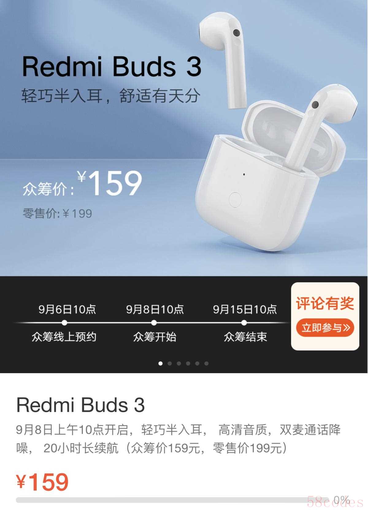 Redmi Buds 将于 9 月 8 日早上 10 点开启众筹,众筹价只需要 159 元,非常值得入手。