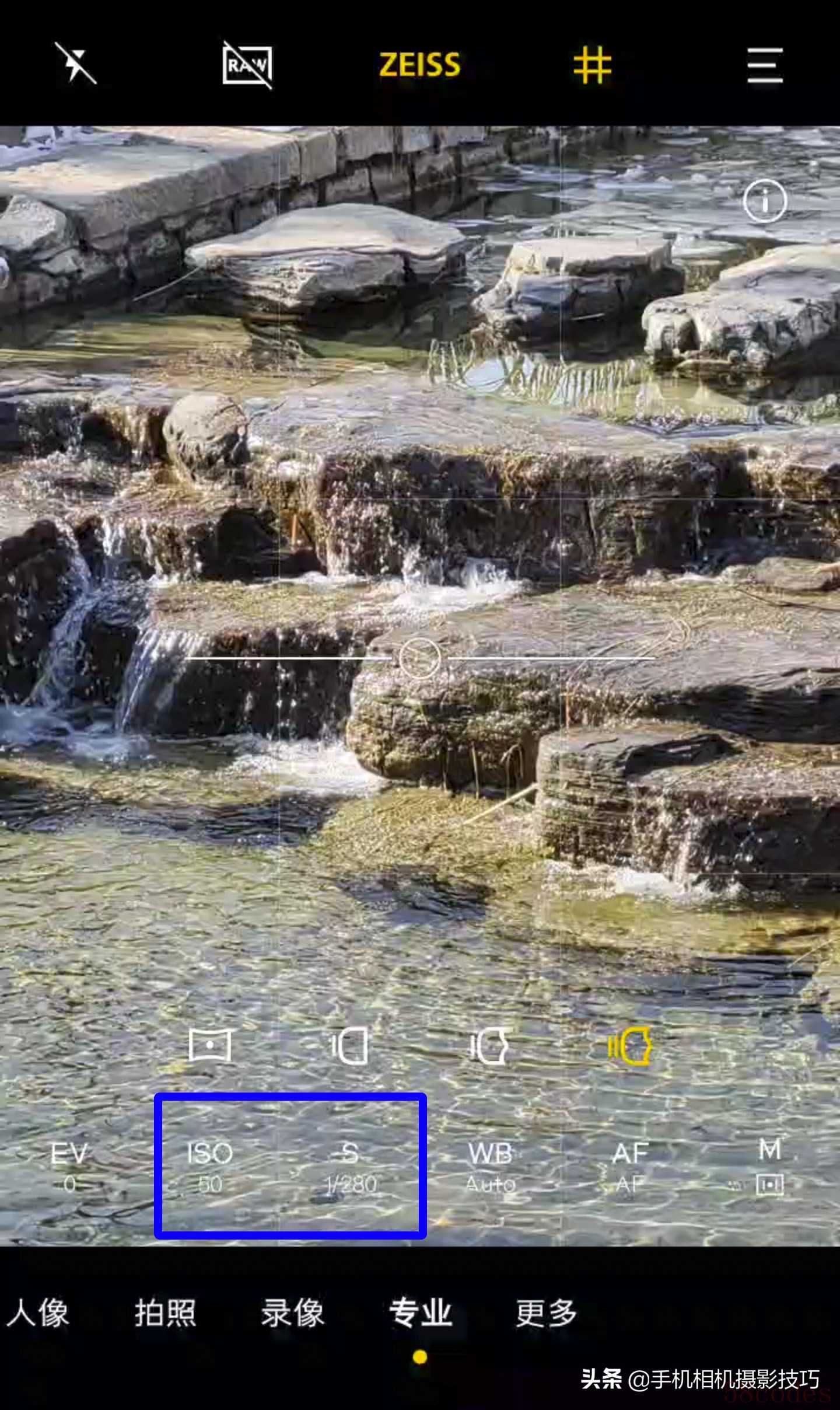 第二张,是用vivo的专业模式,搭配ND镜(ND1000)拍摄,我使用了5X长焦,水流柔化,画质锐利。